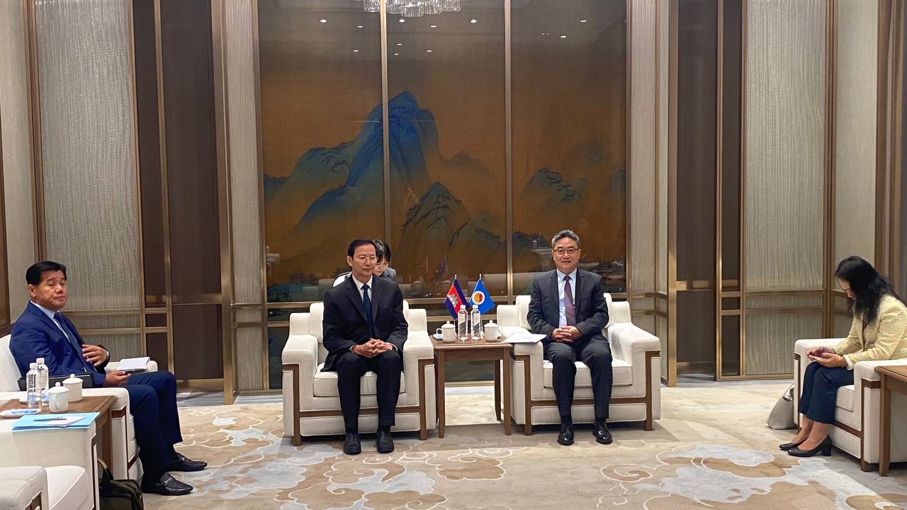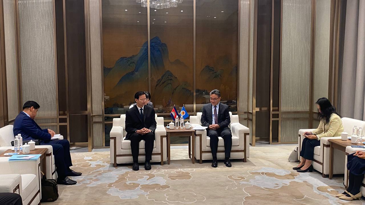 ទន្ទឹមនឹងនេះ ឯកឧត្ដមអនុរដ្ឋលេខាធិការ ក៏បានជួបពិភាក្សាទ្វេភាគីជាមួយ ឯកឧត្ដម Shi Zhongjun អគ្គលេខាធិការ នៃមជ្ឈមណ្ឌលអាស៊ាន-ចិន លើការពង្រីកកិច្ចសហប្រតិបត្តិការរវាងអាស៊ាន និងចិន ជាពិសេសពង្រីកកិច្ចសហការ រវាងកម្ពុជា និងចិន តាមរយៈមជ្ឈមណ្ឌលអាស៊ាន-ចិន ដែលក្នុងនោះ ឯកឧត្ដមអនុរដ្ឋលេខាធិការ បានជម្រាបជូនថា តាមរយៈក្រសួងការបរទេសនិងសហប្រតិបត្តិការអន្តរជាតិ ក្រសួងកសិកម្ម រុក្ខាប្រមាញ់ និងនេសាទ បាននិងកំពុងរៀបចំ គម្រោងសំណើ ដែលនឹងដាក់ជូនមជ្ឈមណ្ឌលអាស៊ាន-ចិន នាពេលខាងមុខ ដោយបានស្នើ ឯកឧត្ដមអគ្គលេខាធិការ ជួយសម្របសម្រួលឲ្យគម្រោងសំណើទាំងនោះ ត្រូវបានអនុវត្តជាក់ស្ដែងនៅកម្ពុជា៕