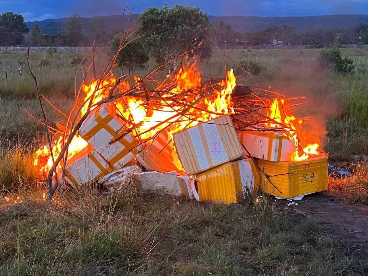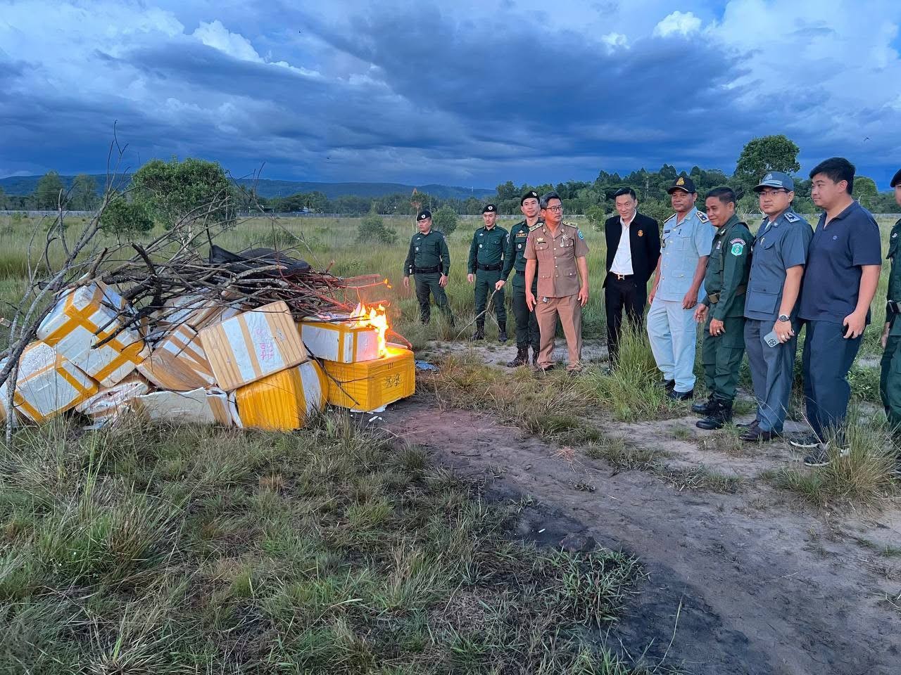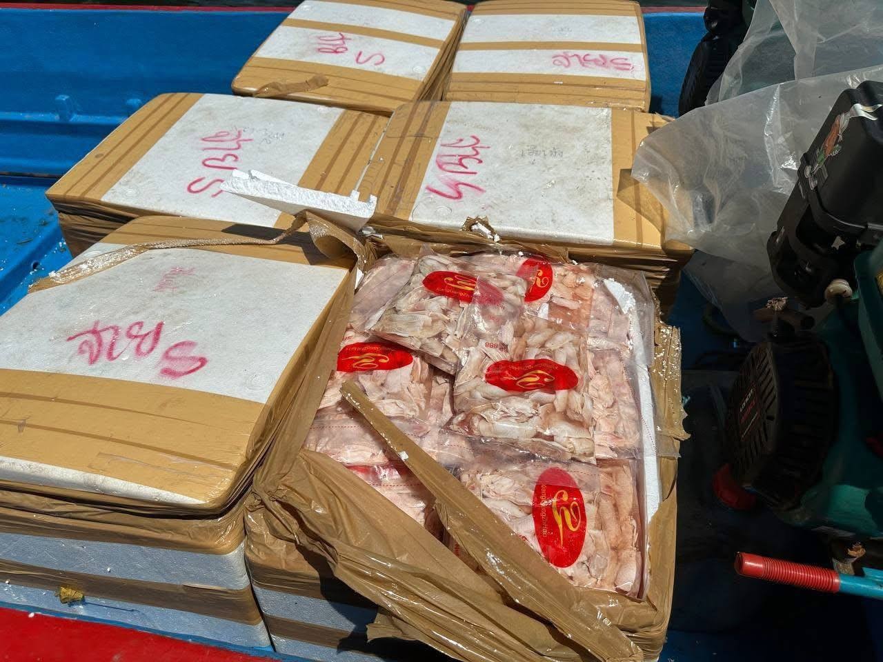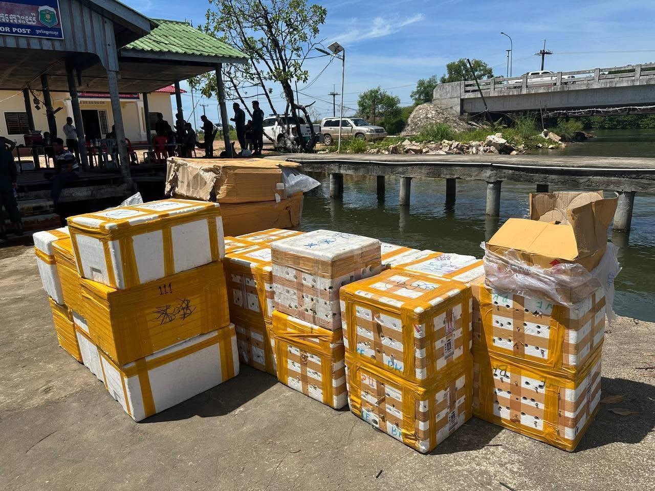 (កោះកុង) ៖ កម្លាំងនគរបាលប៉ុស្តិ៍ការពារព្រែកកោះយ៉ នៃវរៈនគរបាលការពារព្រំដែនទឹកលេខ២៦៩ ខេត្តកោះកុង នៅវេលាម៉ោង ៣ជិតភ្លឺ ថ្ងៃទី១៧ ខែតុលា ឆ្នាំ ២០២៥ បានឃាត់ទូកដឹកសាច់បង្កកមកពីប្រទេសថៃតាមផ្លូវទឹកចូលខេត្តកោះកុង ដោយរឹបអូសបានសាច់បង្កកជិត ១តោន ដូចជាជង្គង់មាន់ ស្លាបមាន់ ក្ដាម និងបានយកទៅដុតកម្ទេចចោល។