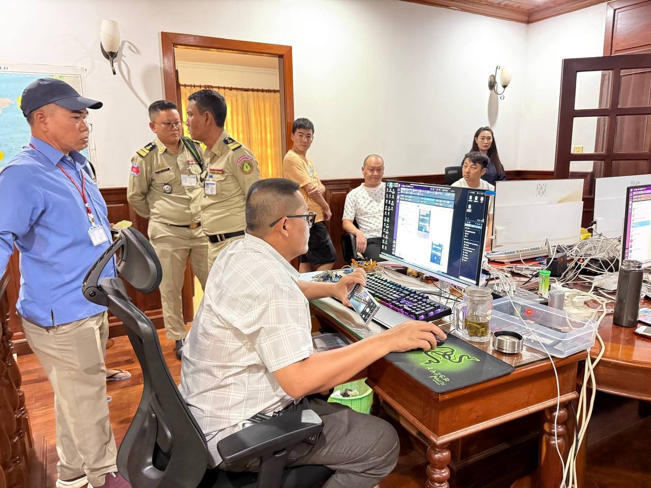 (សៀមរាប) ៖ កម្លាំងចម្រុះនៃគណ:បញ្ជាការឯកភាពរដ្ឋបាលខេត្តសៀមរាប ដោយមានការសម្របសម្រួលពីព្រះរាជអាជ្ញារង នៃអយ្យការអមសាលាដំបូងខេត្តសៀមរាប បានចុះពិនិត្យ និងបង្រ្កាបករណីឆបោកតាមប្រព័ន្ធបច្ចេកវិទ្យា នៅចំណុចផ្ទះវីឡាជួល ស្ថិតនៅភូមិសាលាកន្សែង សង្កាត់ស្វាយដង្គំ ក្រុងសៀមរាប ដោយបានឃាត់ខ្លួនជនសង្ស័យជាបុរសជនជាតិចិនចំនួន ០៣នាក់ ទី១-ឈ្មោះ XIAO SONG ទី២-ឈ្មោះ HAN JIAJIA និងទី៣-ឈ្មោះ QIN CILONG និងស្រ្តីជនជាតិវៀតណាមចំនួន ០១នាក់ ឈ្មោះ LUONG THI QUE។