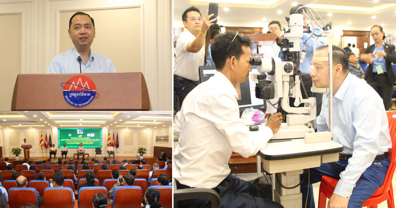 ឯកឧត្តម នេត្រ ភក្រ្តា រដ្ឋមន្ត្រីក្រសួងព័ត៌មាន អញ្ជើញជាអធិបតីកម្មវិធីពិនិត្យភ្នែក និងវាស់កាត់វ៉ែនតា ជាប្រភេទវ៉ែនតាការពារកុំព្យូទ័រ វ៉ែនតាមីញ៉ូប និងវ៉ែនតាសម្រាប់អានអក្សរ ជូនដល់ថ្នាក់ដឹកនាំ និងមន្ត្រីរាជការក្រសួងព័ត៌មានគ្រប់លំដាប់ថ្នាក់ ដោយឥតគិតថ្លៃ នាព្រឹកថ្ងៃទី២៩ ខែវិច្ឆិកា ឆ្នាំ២០២៥ នៅសាលមណ្ឌលបណ្តុះបណ្តាល និងវិក្រឹតការវិជ្ជាជីវៈសារព័ត៌មាន ទីស្តីការក្រសួងព័ត៌មាន ដោយសហការជាមួយក្រុមគ្រូពេទ្យភ្នែក គៀនឃ្លាំង។