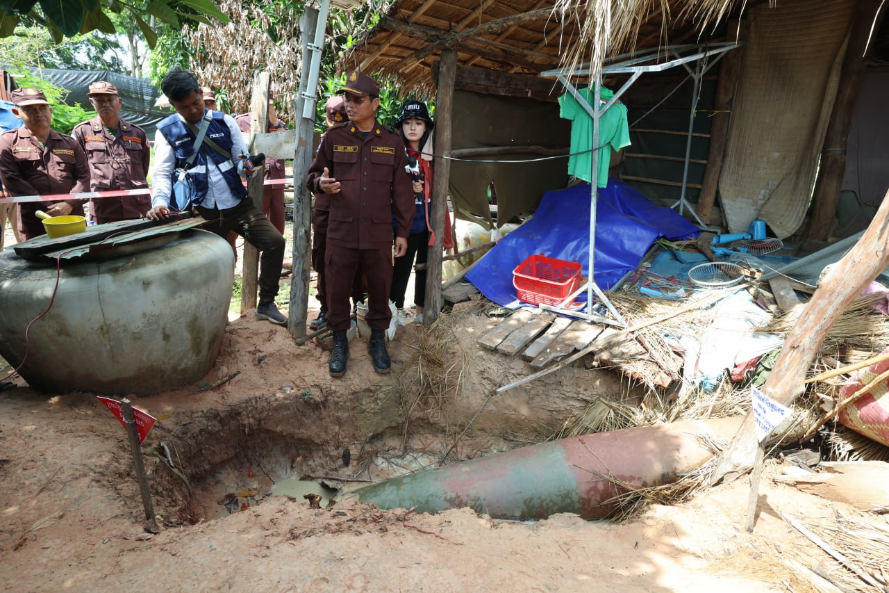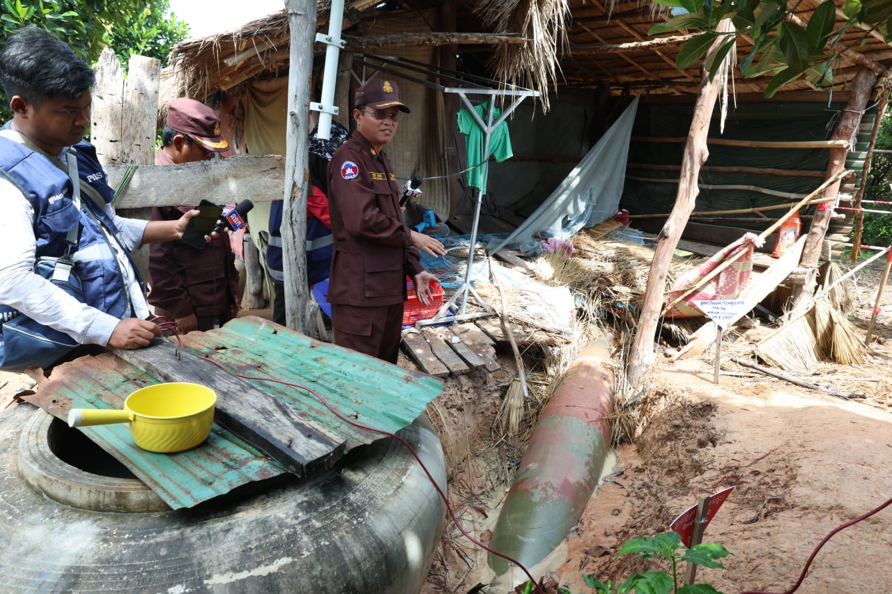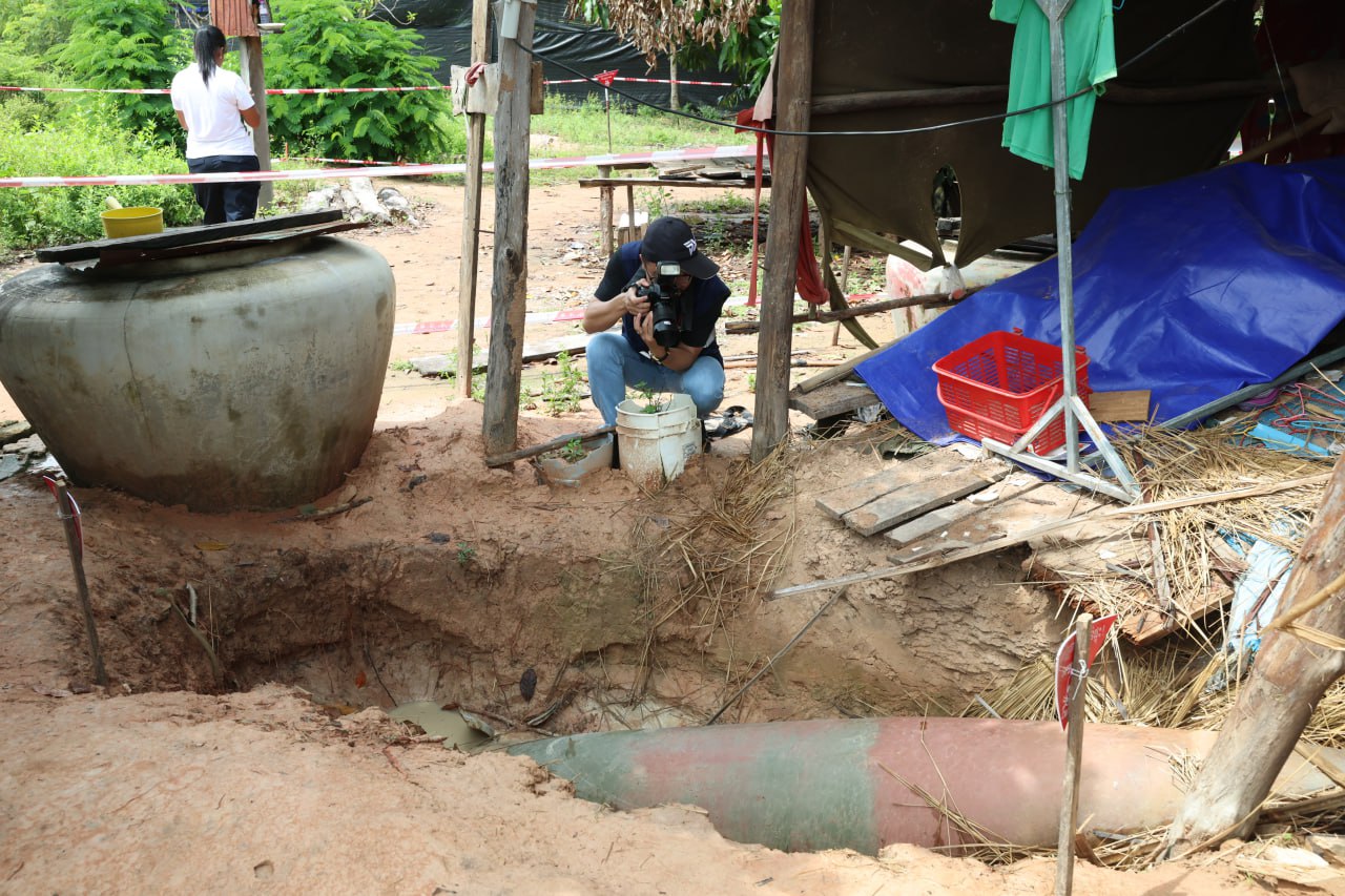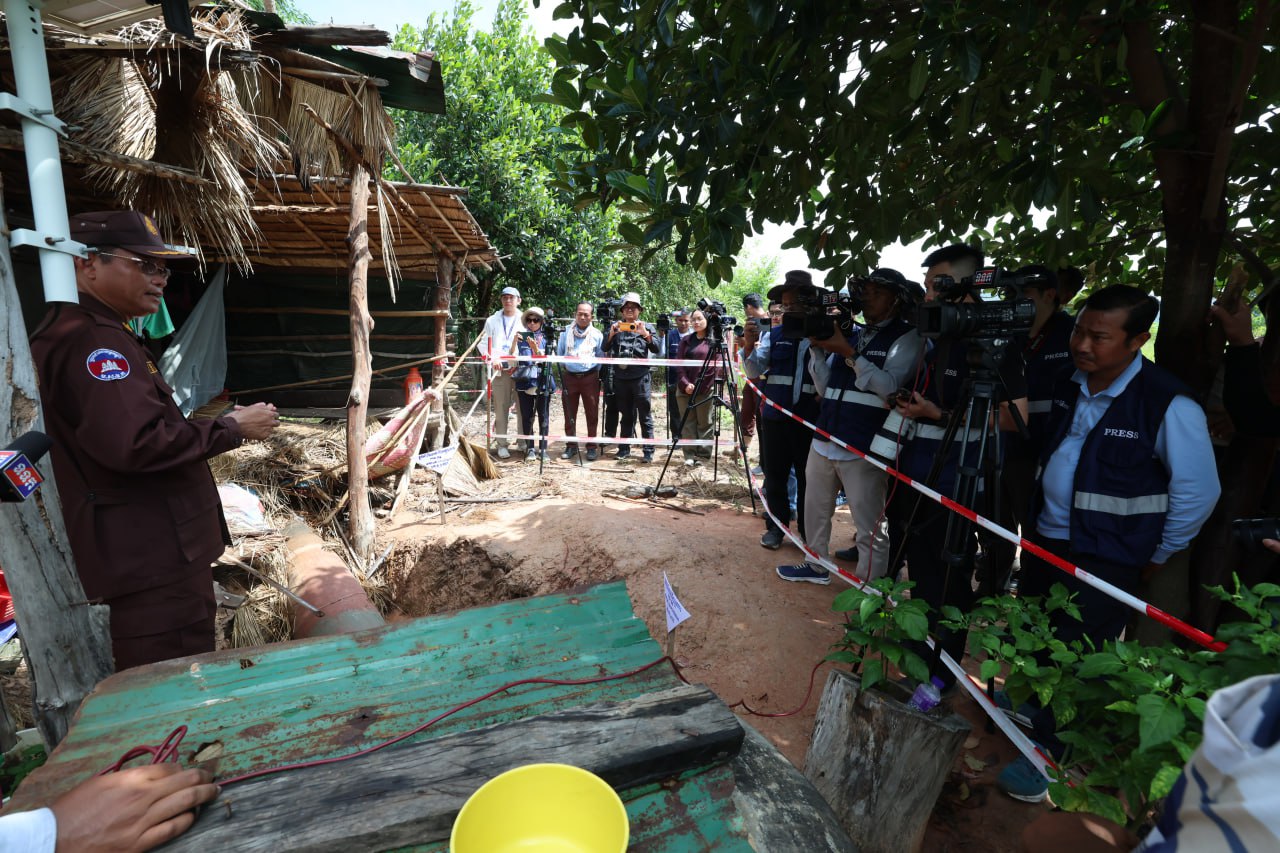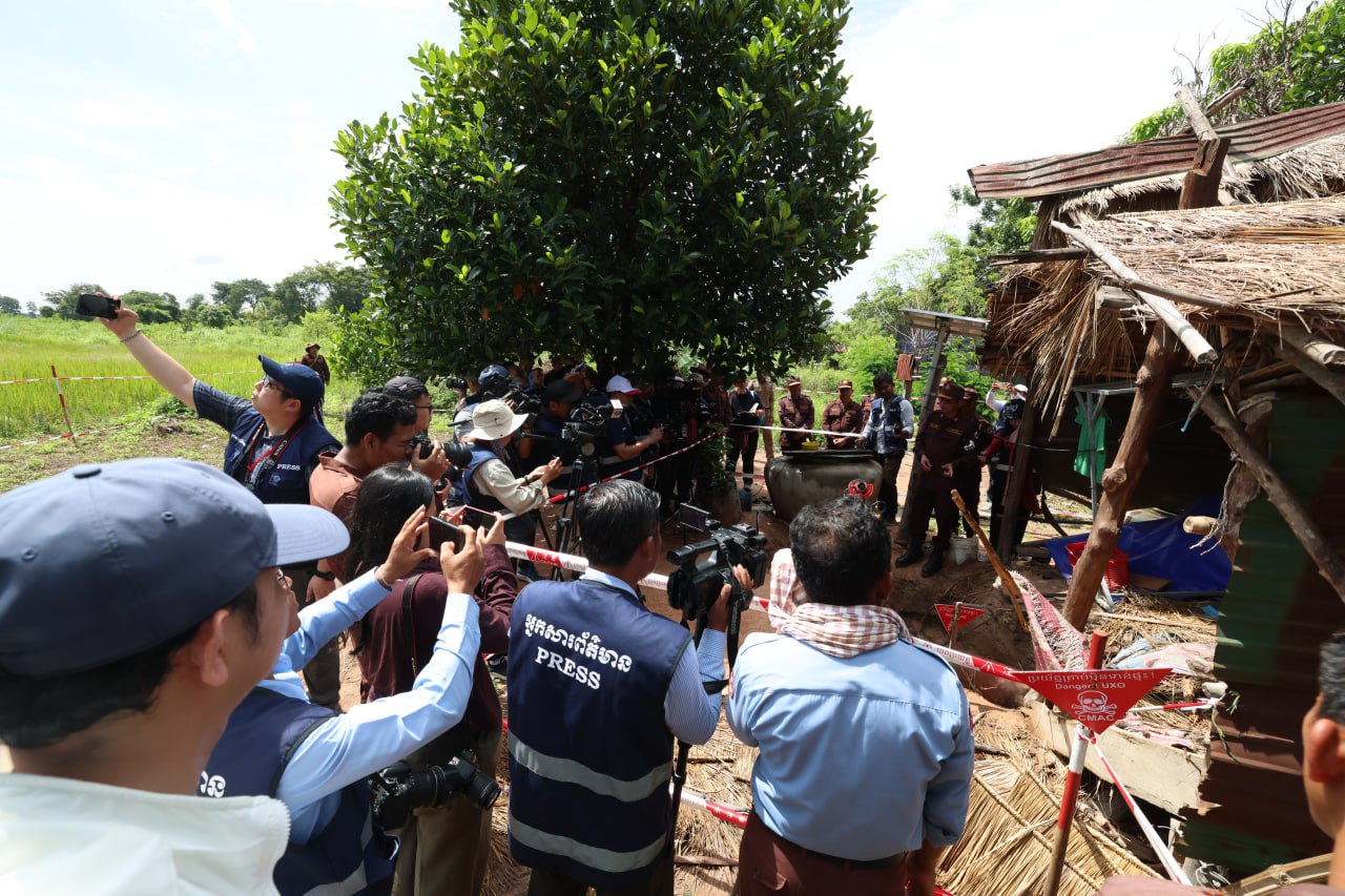 (ឧត្តរមានជ័យ)៖ លោក ហេង រតនា ប្រតិភូរាជរដ្ឋាភិបាល ទទួលបន្ទុកជាអគ្គនាយកមជ្ឈមណ្ឌលកម្ចាត់មីនកម្ពុជា (ស៊ីម៉ាក់) បានធ្វើបទបង្ហាញពីទីតាំងគ្រាប់បែក MK-84 ដែលកងទ័ពថៃទម្លាក់ពីលើយន្តហោះ F-16 នៅភូមិឋានពលរដ្ឋ នៅភូមិថ្មដូន ឃុំគោកមន ស្រុកបន្ទាយអំពិល ខេត្តឧត្តរមានជ័យ ដល់អ្នកសារព័ត៌មានតំបន់អាស៊ី។