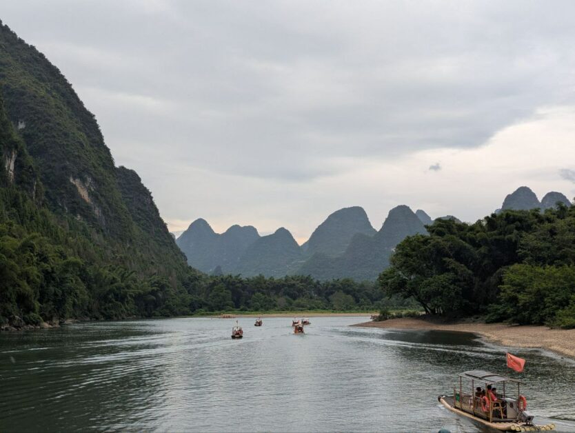ដំណើរទូក នាវាលេងកម្សាន្តលើទន្លេលីចៀង (Lijiang River Cruise) ត្រូវបានចាត់ទុកជាកម្មវិធីទេសចរណ៍ដ៏ ពេញនិយមជាងគេ។ ដំណើរកម្សាន្តដ៏អស្ចារ្យនេះចាប់ផ្តើមពីផែ Moparn Shan និង Zhujiang ហើយ បញ្ចប់នៅផែ Longtoushan និង Shuidongmen នៅស្រុក Yangshuo ដោយមានចម្ងាយ ៦០ គីឡូម៉ែត្រ ដែលស្ថិតនៅក្នុងផ្នែកស្នូលនៃតំបន់ទេសចរណ៍ទន្លេលីចៀង និងតំបន់មរតកធម្មជាតិ ពិភពលោក Karst គុយលីន។ កន្លែងគួរឱ្យចាប់អារម្មណ៍សំខាន់ៗមានដូចជា រូងភ្នំក្បាលពាក់ គួនយាន (Guanyan Cave) ទិដ្ឋភាពឆ្លុះពណ៌លឿងនៅលើទឹក (Huangbu Reflection) និងថ្ម (Xianrentuimo) ដែលត្រូវបានគេស្គាល់ថាជា “ទន្លេលីចៀង ដូចជារូបគំនូរដ៏ស្រស់ ស្អាតរាប់រយម៉ាយ៍ល”។