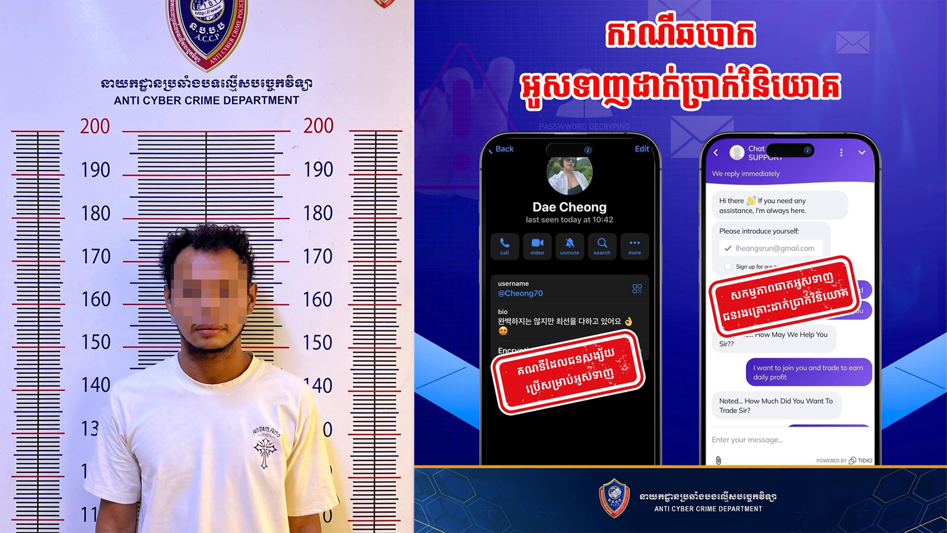 យោងតាមបញ្ជាដឹកនាំរបស់ ឯកឧត្ដម នាយឧត្ដមសេនីយ៍ ស ថេត អគ្គស្នងការនគរបាលជាតិ និងតាមការចង្អុលណែនាំពី ឯកឧត្ដម ឧត្ដមសេនីយ៍ឯក អគ្គស្នងការរងនគរបាលជាតិ កាលពីថ្ងៃទី០៨ ខែកញ្ញា ឆ្នាំ២០២៥ នាយកដ្ឋានប្រឆាំងបទល្មើសបច្ចេកវិទ្យា បានបើកការស្រាវជ្រាវ និងបង្រ្កាបលើករណីឆបោកប្រាក់ក្រោមរូបភាពវិនិយោគតាមអនឡាញ។