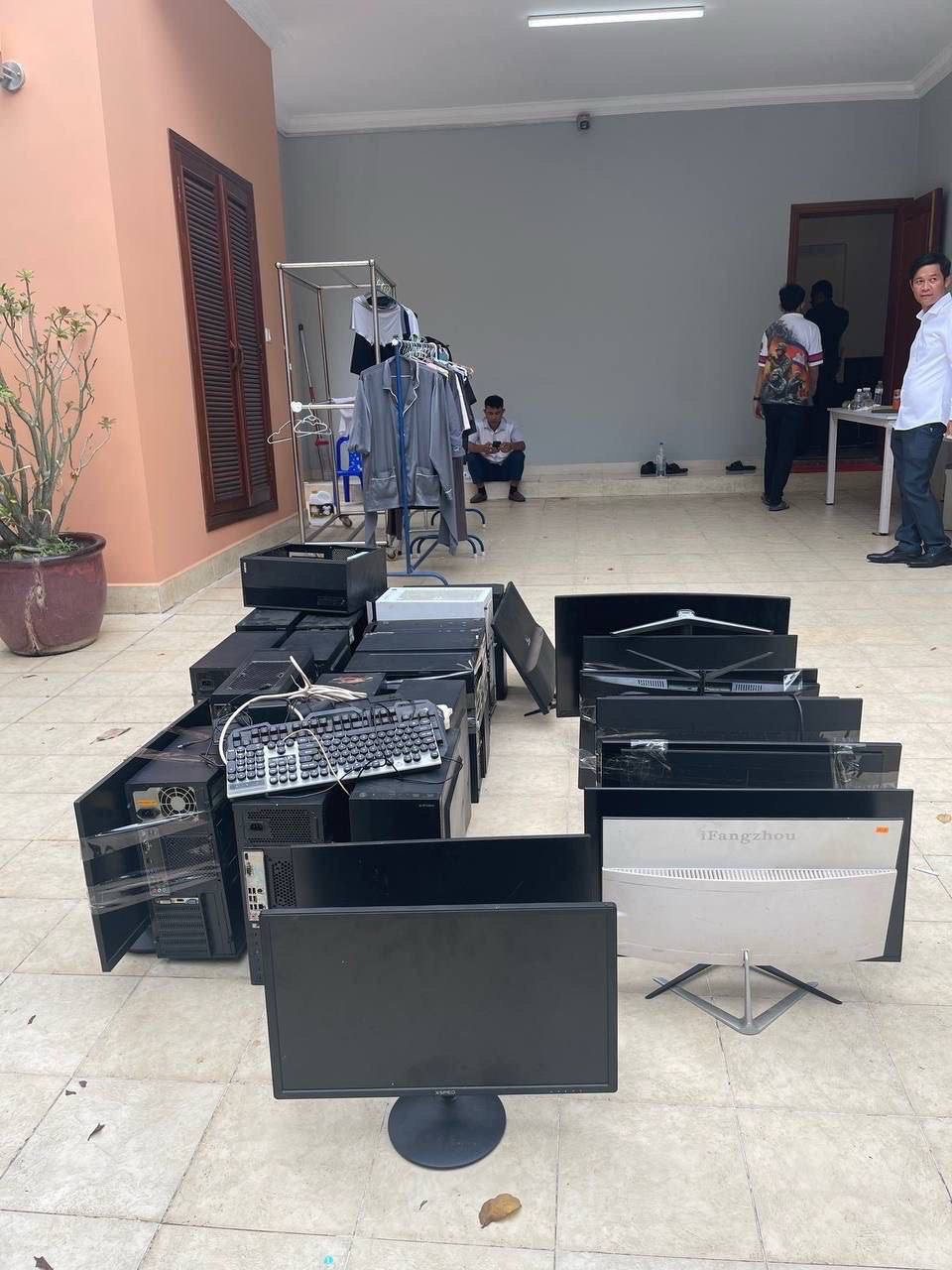 វត្ថុតាងដែលរឹបអូសនៅពេលនោះ រួមមាន៖ ម៉ូនីទ័រ ១៣គ្រឿង ស៊ីភីយូ ១៧គ្រឿង ទូរសព្ទចំនួន ៤៦គ្រឿង លិខិតឆ្លងដែនចំនួន ១៣ និង Laptop ០៤គ្រឿង។