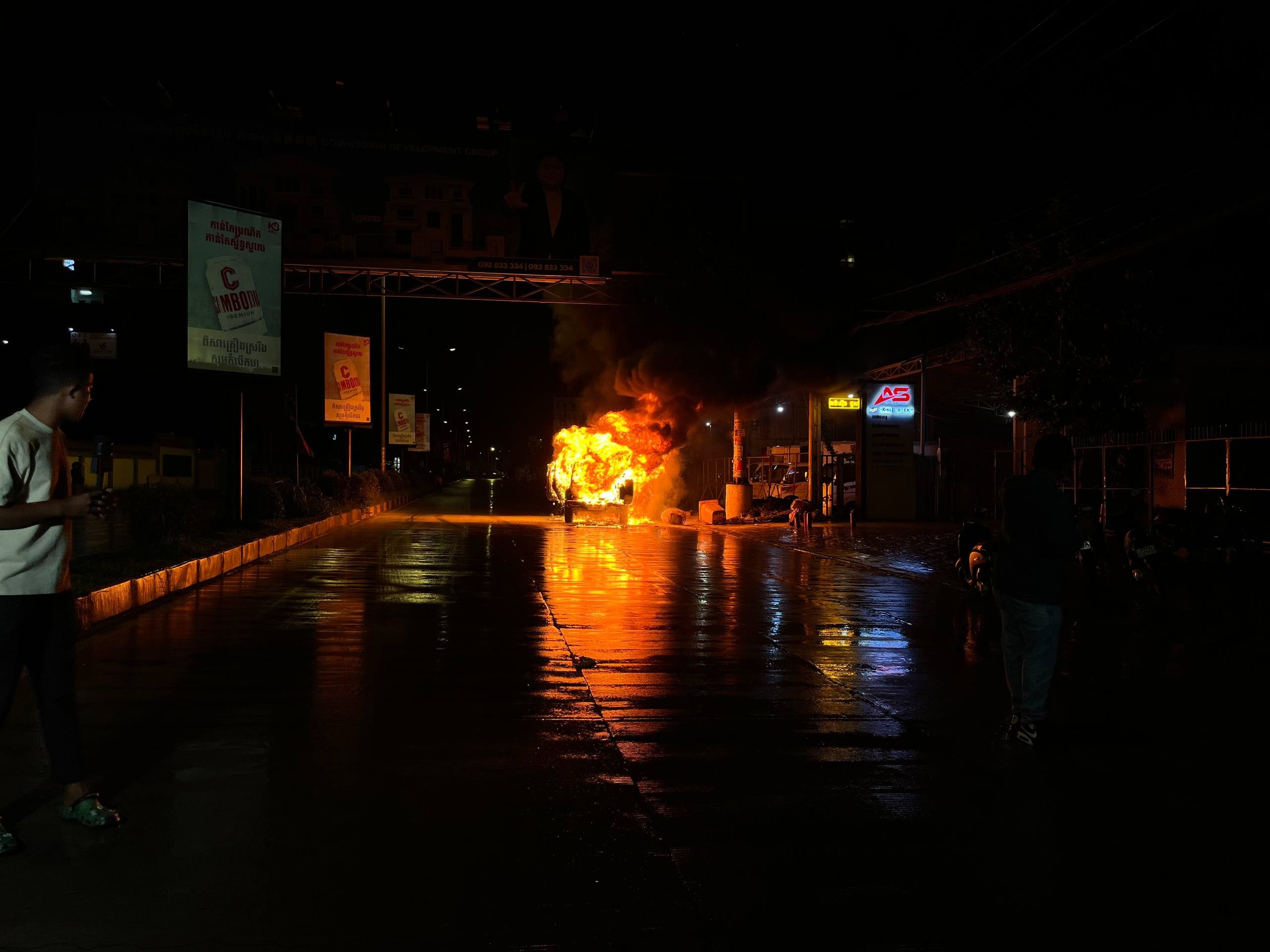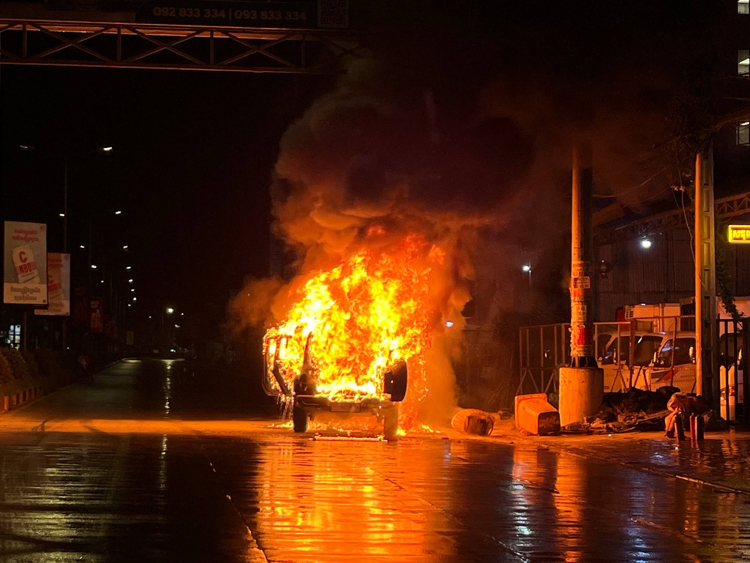 ភ្លាមៗនោះ ការិយាល័យនគរបាលបង្ការពន្លត់អគ្គិភ័យ និងសង្គ្រោះ នៃស្នងការដ្ឋាននគរបាលរាជធានីភ្នំពេញ បានបញ្ជូនរថយន្ត ០១គ្រឿងទៅកាន់ទីតាំងកើតហេតុ ធ្វើការអន្តរាគមន៍ និងបាញ់ពន្លត់ តែរថយន្តខូចខាតទាំងស្រុង មិនបង្កឱ្យមានមនុស្សរងរបួសនោះទេ។