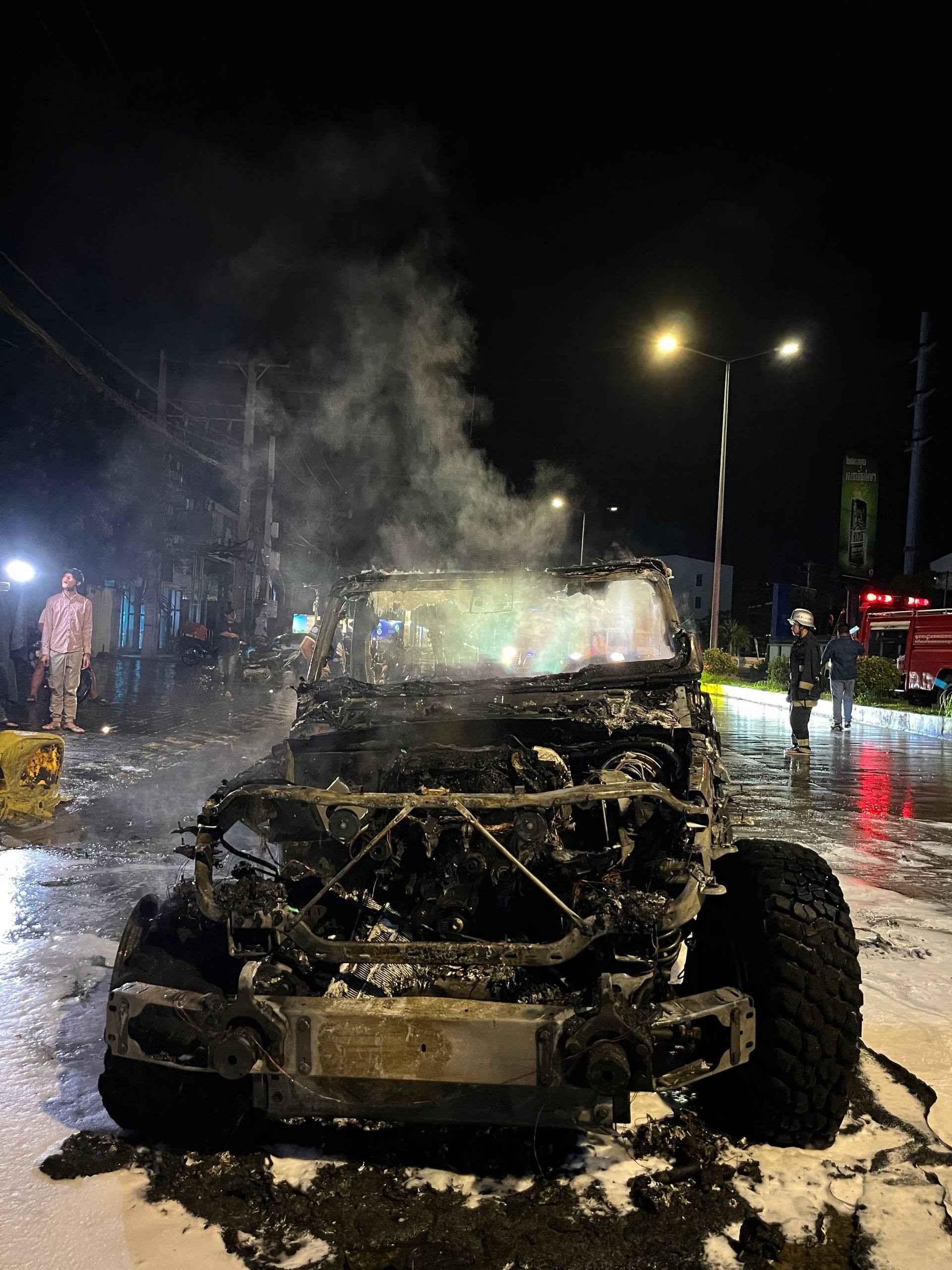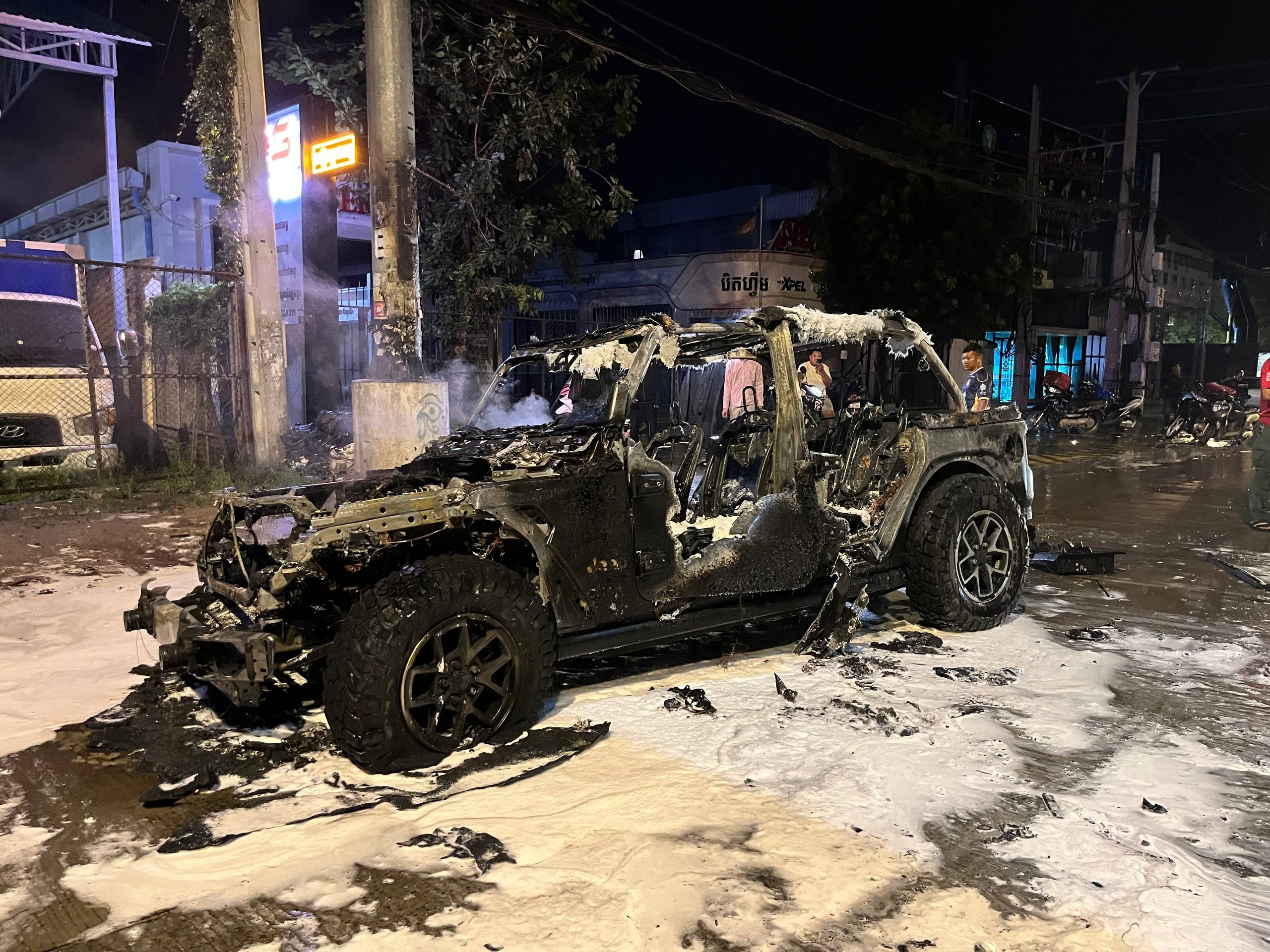 (ភ្នំពេញ) ៖ រថយន្តសេរីទំនើប JEEP RUBICON ០១គ្រឿង ត្រូវបានអគ្គិភ័យឆាបឆេះទាំងស្រុង បន្ទាប់ពីជួបគ្រោះថ្នាក់ចរាចរណ៍ រួចបើកហួសទីតាំងកើតហេតុប្រមាណ ៣០ម៉ែត្រក៏ហ៊ុយផ្សែង និងបង្កទៅជាអគ្គិភ័យឆាបឆេះតែម្តង ។