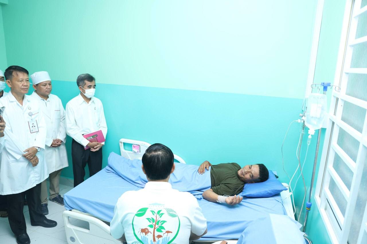 ខេត្តពោធិ៍សាត់៖ ឯកឧត្តម ខូយ រីដា អភិបាលខេត្តពោធិ៍សាត់ និងក្រុមការងារ នៅថ្ងៃទី២៦ ខែសីហា ឆ្នាំ២០២៥នេះ ឆ្លៀតឱកាសមុនចូលរួមពិធីបុណ្យរុក្ខទិវា បានអញ្ជើញចុះសួរសុខទុក្ខកម្លាំងយោធាជួរមុខម្នាក់ នៃវីរសេនាតូចស៊ើបការណ៍ ឈរជើងនៅចំណុចអានសេះ ខេត្តព្រះវិហារ ដែលមានបញ្ហាសុខភាព ពុលផ្សែងគីមី មានអាការចុកដើមទ្រូង ទន់ដៃជើង កំពុងសម្រាកព្យាបាល នៅមន្ទីរពេទ្យបង្អែកពោធិ៍សាត់ ដោយទទួលបានការយកចិត្តទុកដាក់បំផុតពីសំណាក់ក្រុមគ្រូពេទ្យ។