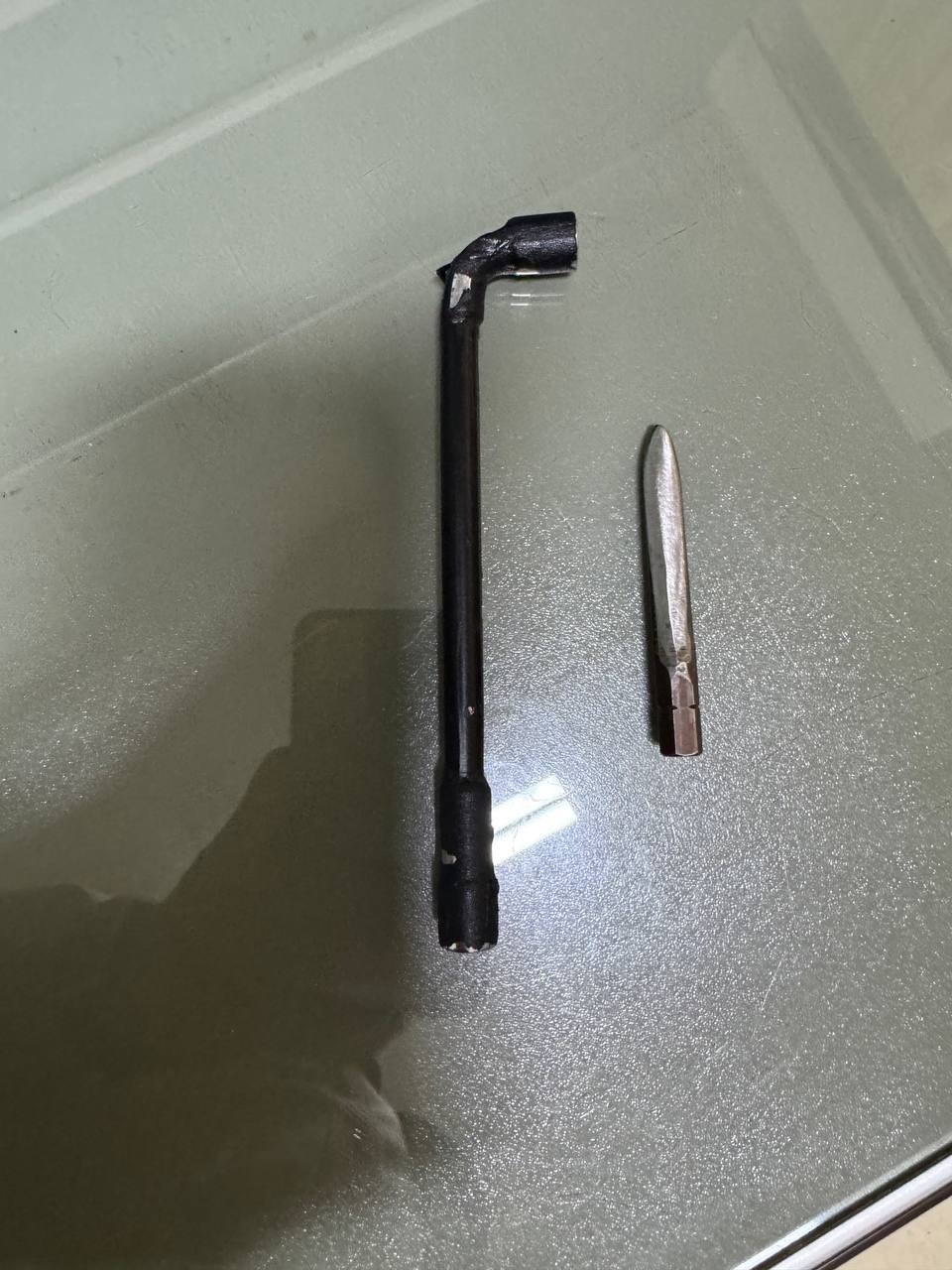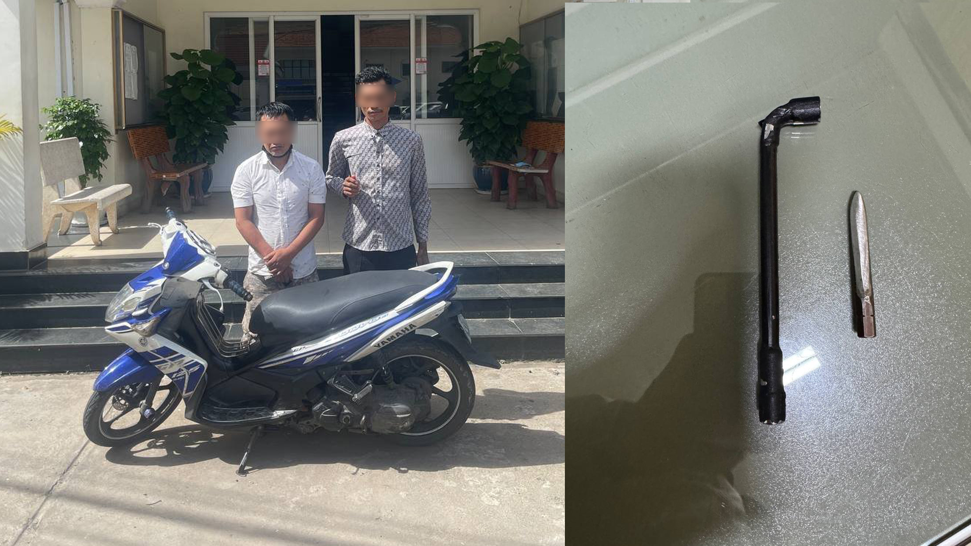 សម្ភារៈដកហូត រួមមាន៖ ដែកសំប៉ែតមុខស្រួច ចំនួន ០១ដើម និងសោទីបលេខ៨ ចំនួន ០១ដើម (ឧបករណ៍សម្រាប់កាច់សោរកម៉ូតូ) និងម៉ូតូ ០១គ្រឿង ម៉ាក Yamaha Nouvo ពណ៌ស-ខៀវ ពាក់ផ្លាកលេខ ភ្នំពេញ 1L-4471។
